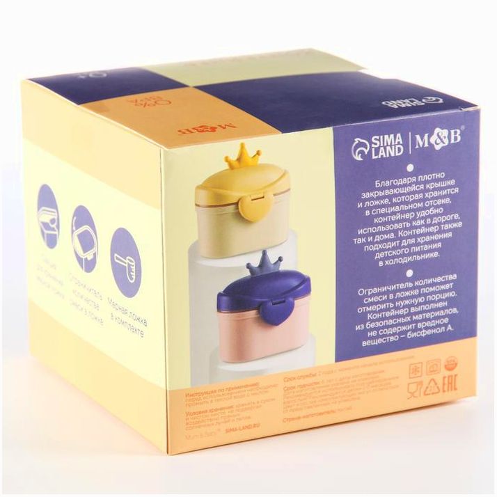 Контейнер для хранения детского питания «Корона», 400 мл., малый, цвет желтый (№7653240).