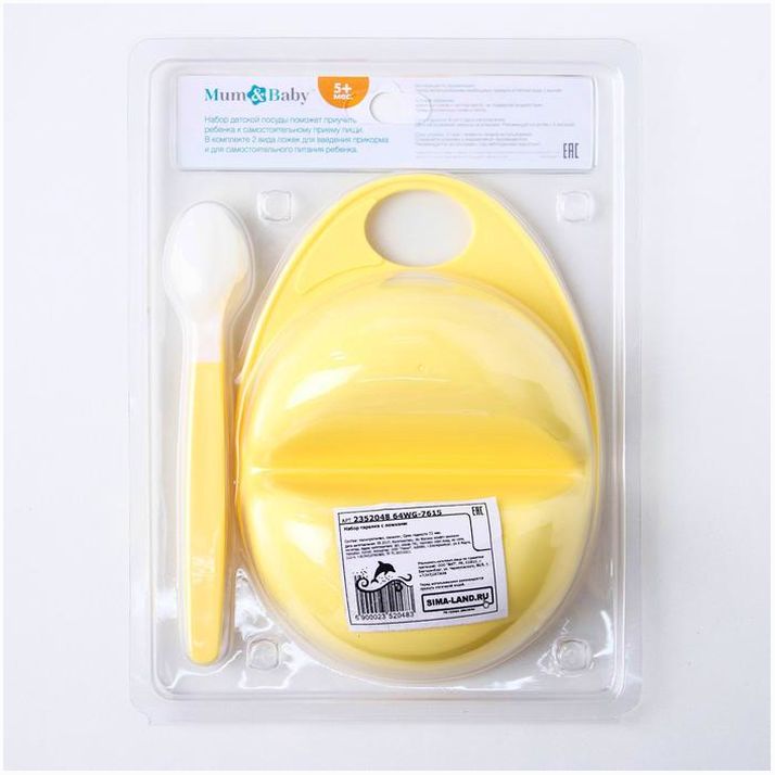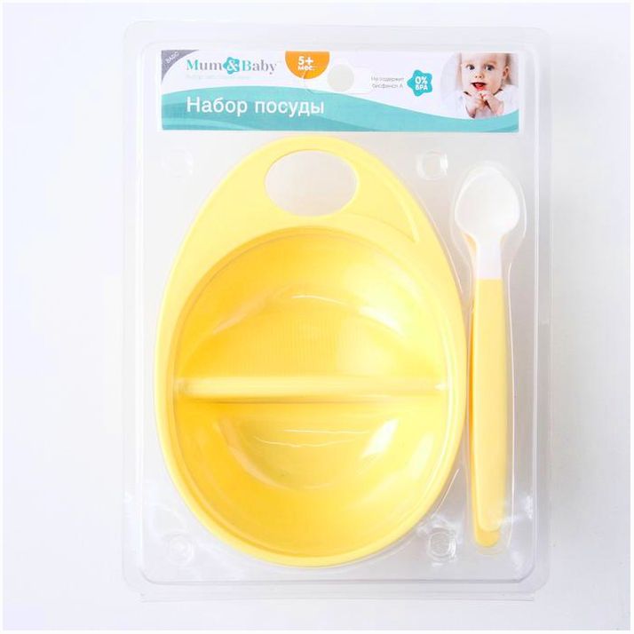 Набор посуды , 3 пр: тарелка двухсекционная, ложки 2 шт., от 5 мес., цвет жёлтый (№2352048).