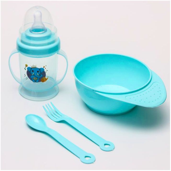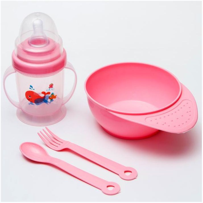 Набор для кормления: миска, бутылочка, вилка, ложка, цвет МИКС (№4724448).