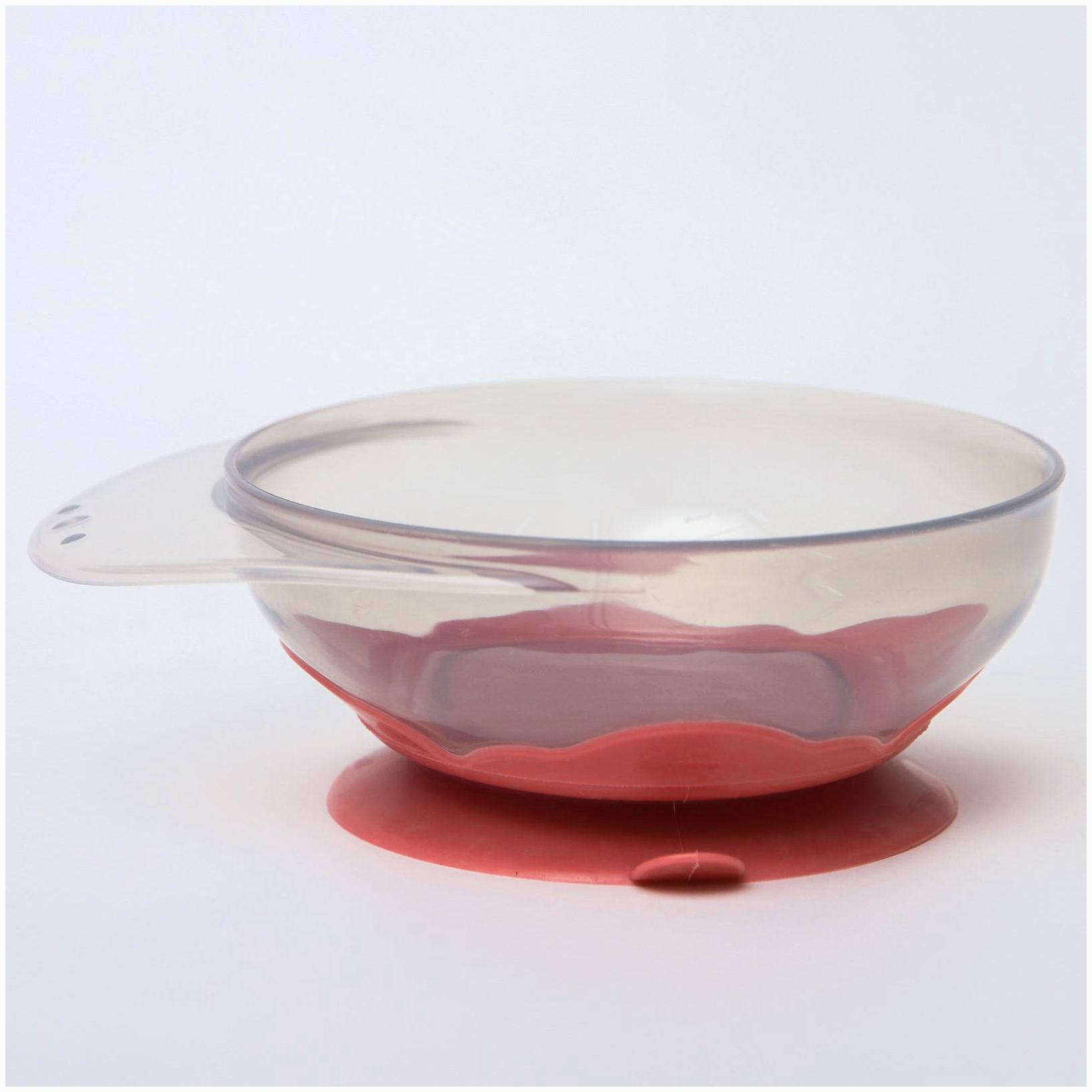 Набор для кормления: миска на присоске, с крышкой + ложка, цвет розовый (№4770839).