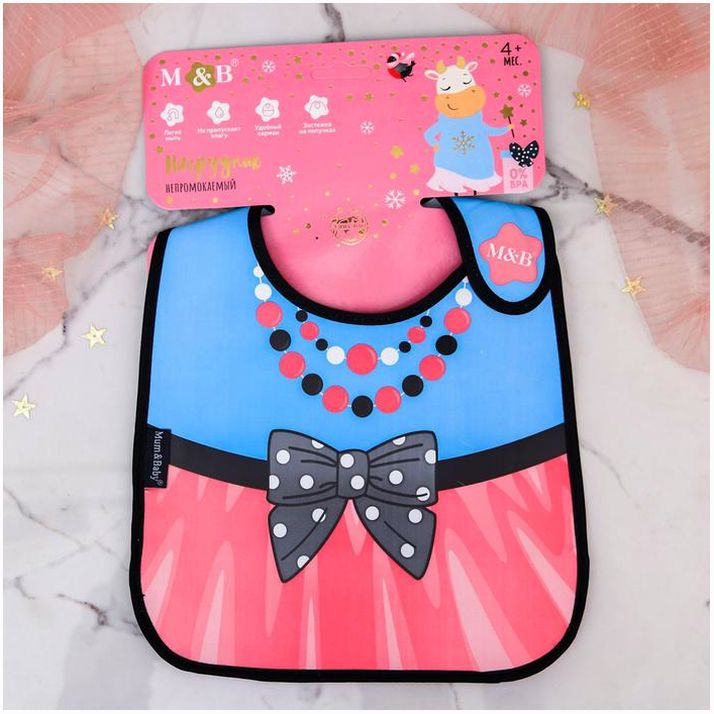 Нагрудник «Снежная нежность» непромокаемый на липучке, с карманом (№5044950).