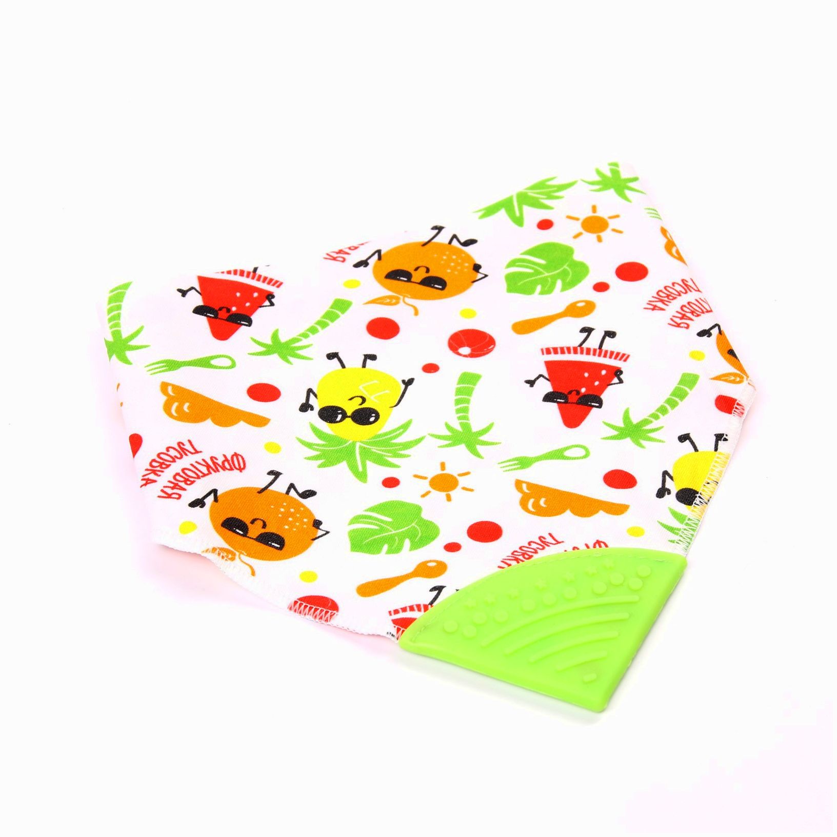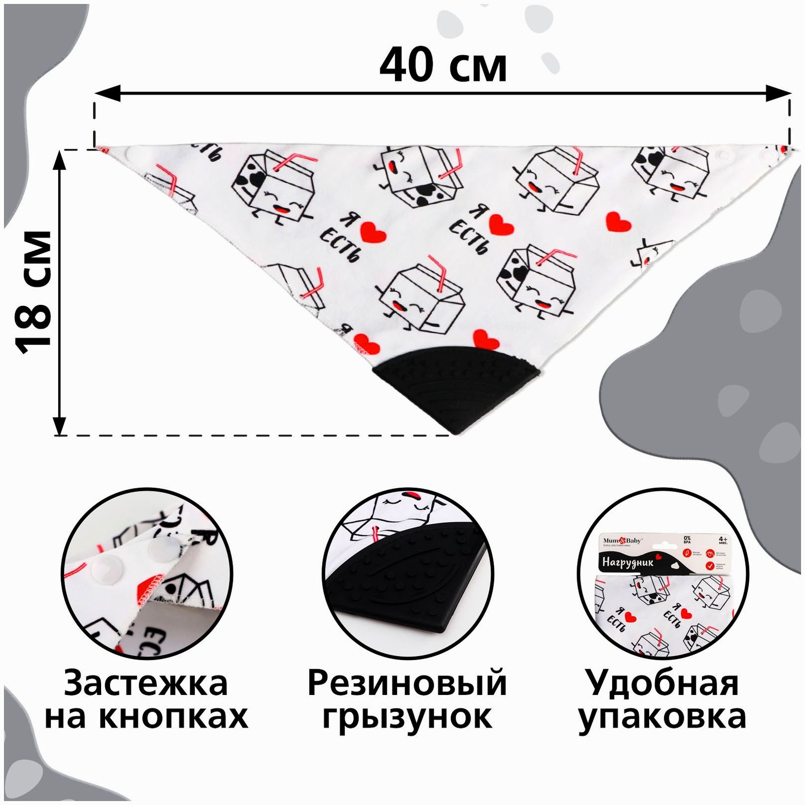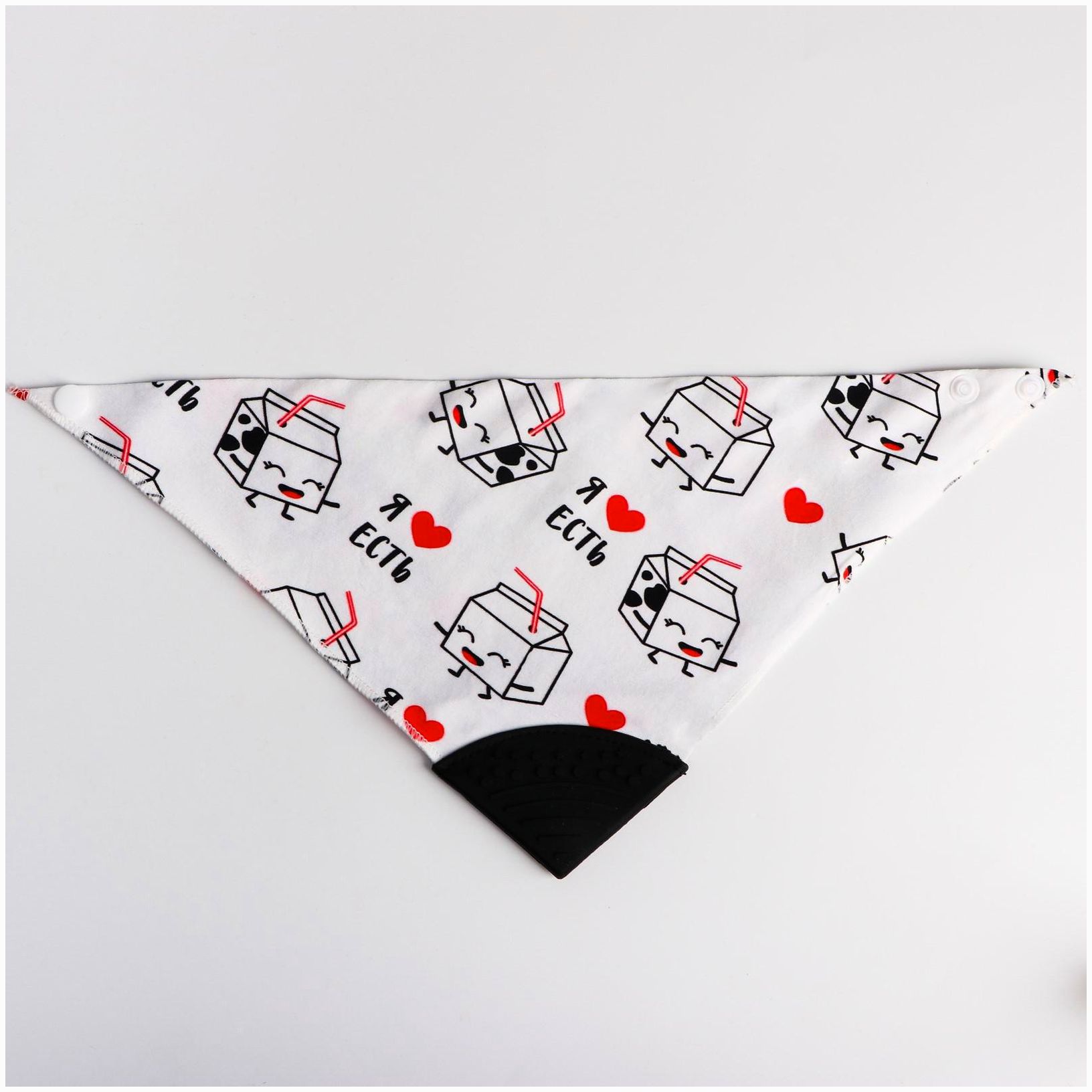 Нагрудник-бандана/слюнявчик «Я люблю есть» непромокаемый с прорезывателем, на кнопке, МИКС (№5555031).