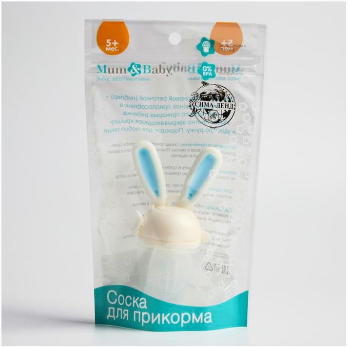 Товар изготовлен из высококачественных и гипоаллергенных материалов (пластика и силикона) и имеет сертификат ЕАС. Подходит для деток с 5 месяцев.