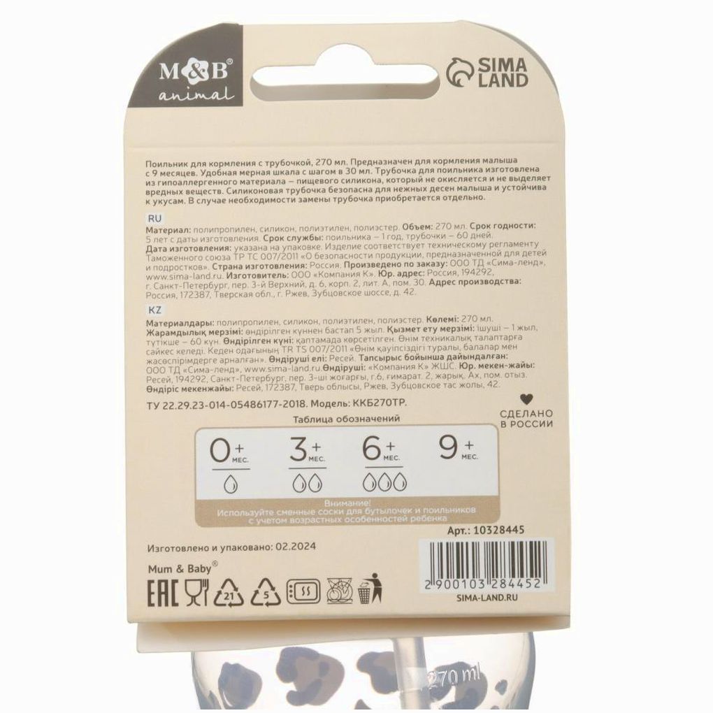 Поильник детский с трубочкой Animal, 270 мл. (№10328445).