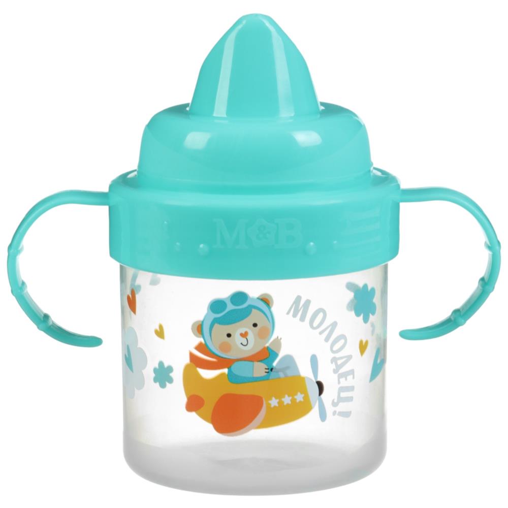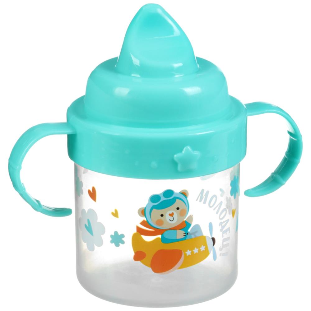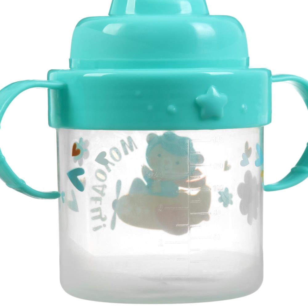 Поильник детский с твёрдым носиком «мишка», 150 мл., с ручками, цвет бирюзовый (№10648987).