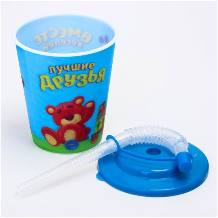 Поильник с трубочкой «Лучшие друзья», голография, 250 мл, от 9 мес., с наклейками (№1854303).