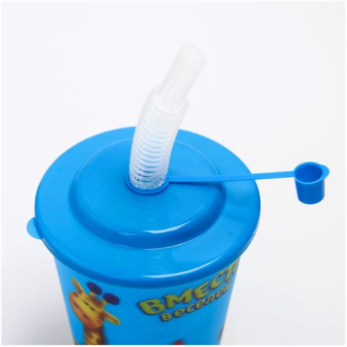 Стакан плотно закрывается крышкой, в которой есть отверстие для гофрированной трубочки. У последней, в свою очередь, имеется специальный колпачок для защиты от грязи и пыли.