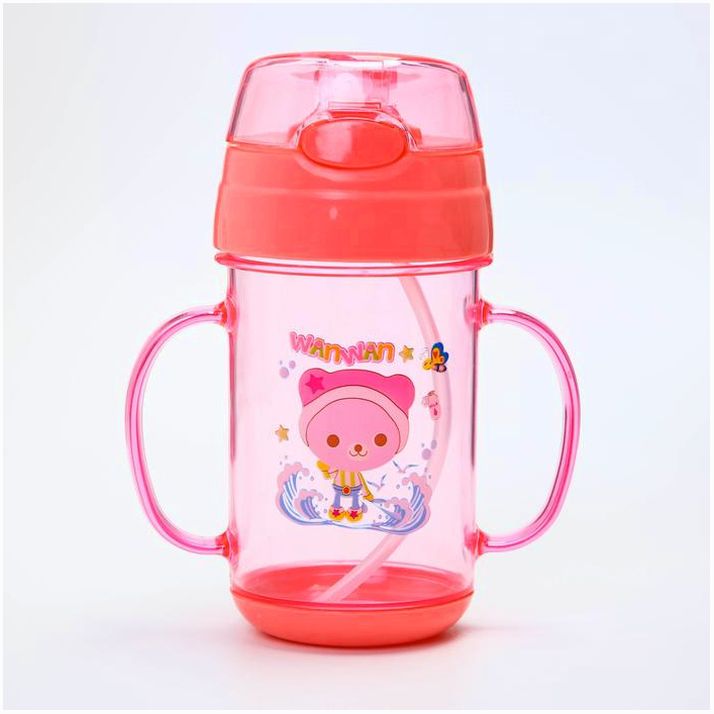 Поильник с трубочкой, 300 мл., с ручками, цвета МИКС (№2793128).