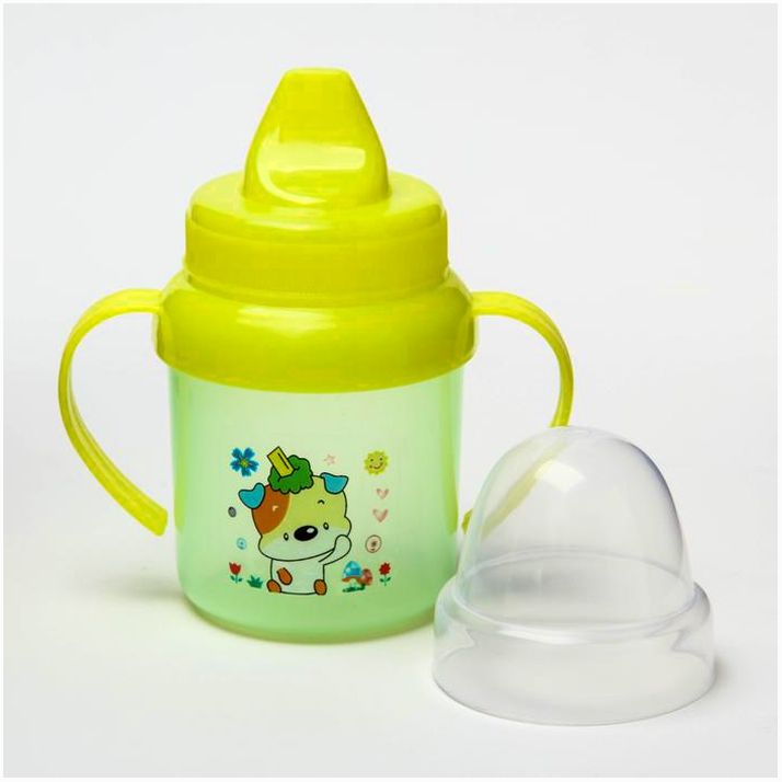 Поильник детский с ручками, твердый носик, крышечка, 130 мл., с ручками, цвет МИКС (№2793161).