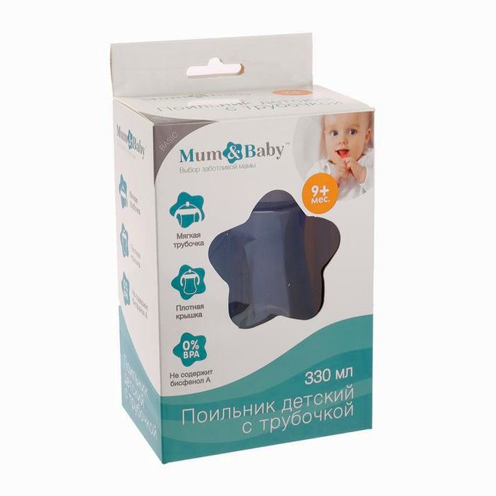 Поильник детский с трубочкой, 330 мл., с ручками, цвета МИКС (№2825366).