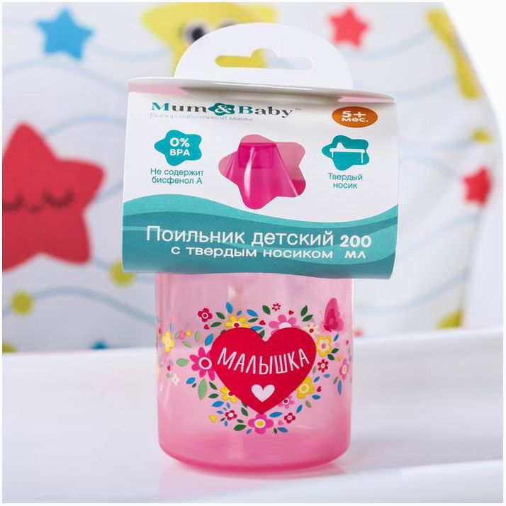 Поильник детский «Малышка» с твёрдым носиком 200 мл, цвет розовый/фуксия (№3721454).