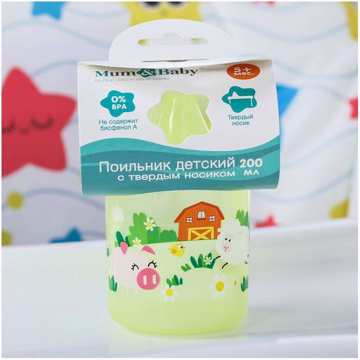 Поильник детский «Веселая ферма» с твёрдым носиком 200 мл, цвет желтый (№3721458).