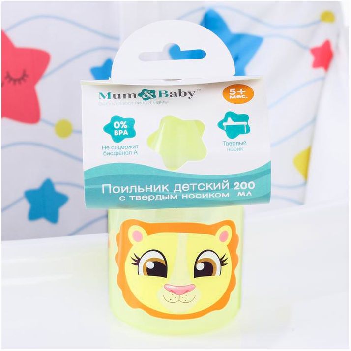 Поильник детский «Львенок Лео», с твёрдым носиком, 200 мл, цвет желтый (№3721467).