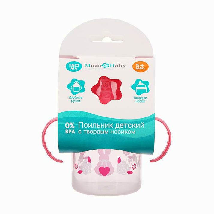 Поильник детский с твёрдым носиком «Моя зая», с ручками, 150 мл, цвет розовый (№3725829).