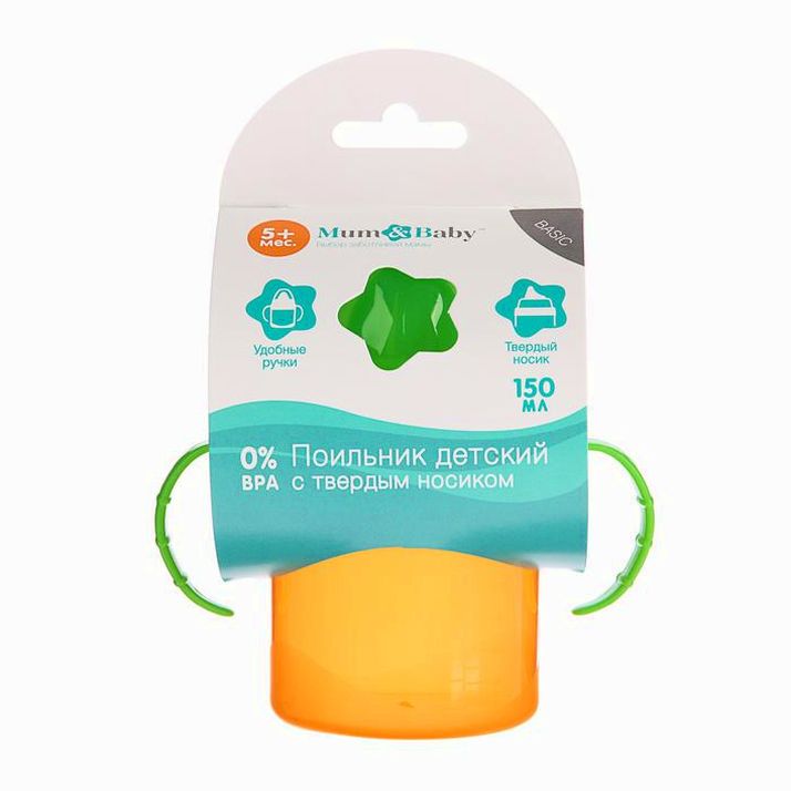Поильник детский с твёрдым носиком, с ручками, 150 мл, цвет оранжевый/зеленый (№3725845).