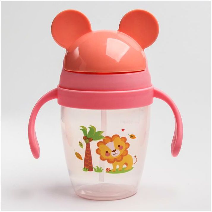 Поильник с силиконовой трубочкой 200 мл., с ручками, цвет МИКС (№4724440).