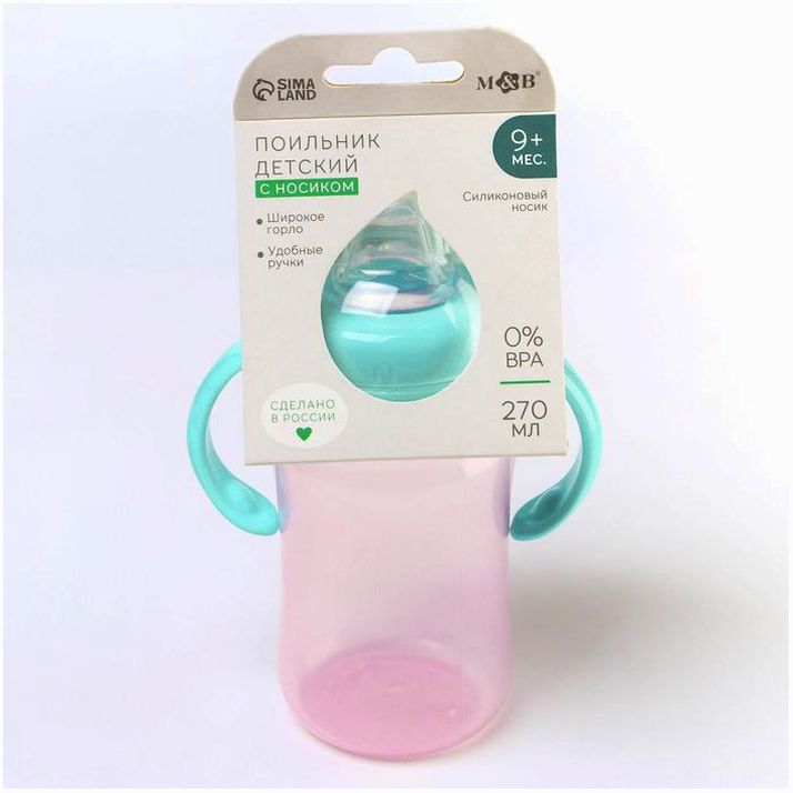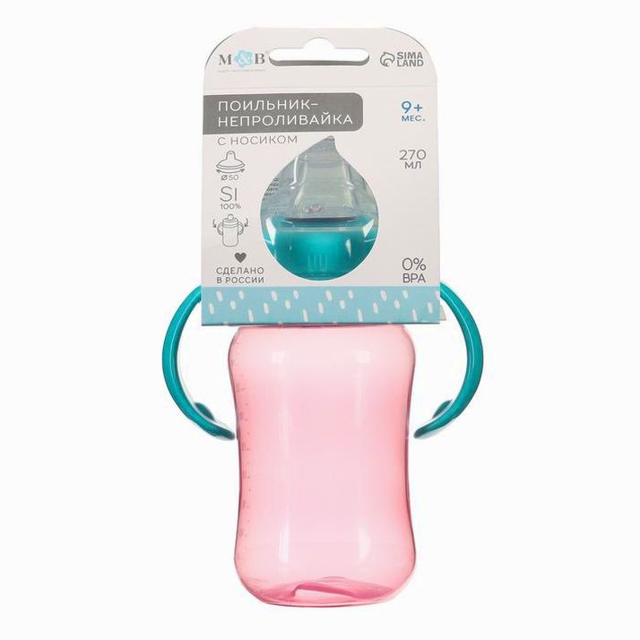 Поильник - непроливайка с силиконовым носиком, 270 мл, розовый/бирюзовый (№9269315).