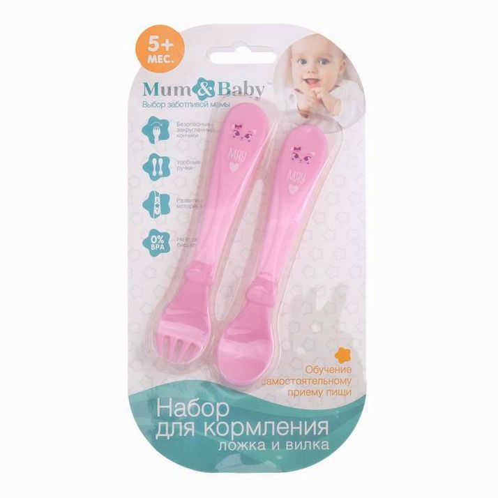 Столовые приборы «Кошечка Софи», 2 пр: ложка и вилка, от 5 мес., цвет розовый (№2618968).