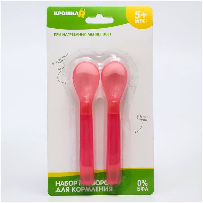 Набор ложек детских термочувствительных для кормления, от 5 мес., 2 шт., цвета МИКС (№652034).