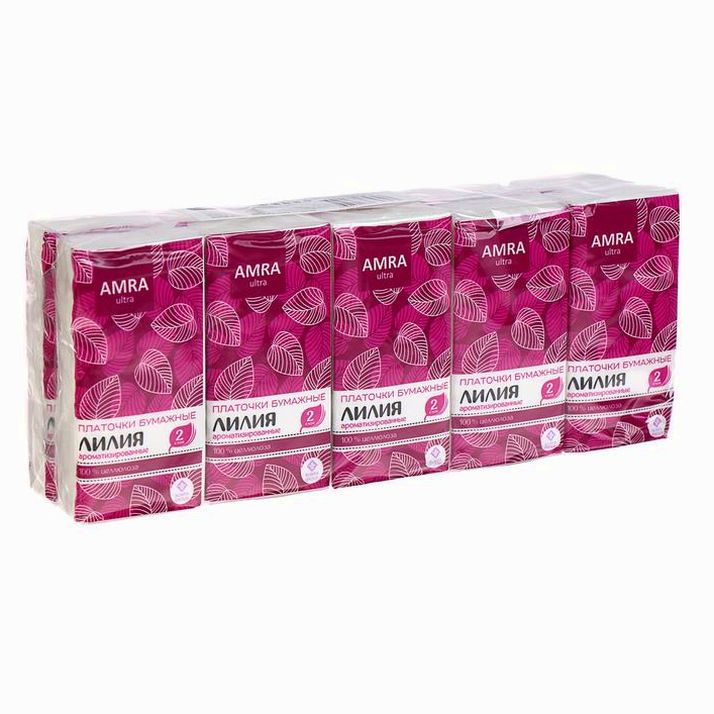 Белые 2-слойные бумажные платочки AMRA с ароматом лилии будут особенно востребованы в межсезонье, когда риск простудных заболеваний увеличивается в несколько раз. Платочки изготавливают из 100% целлюлозы. Данное средство гигиены обладает достаточной прочностью.