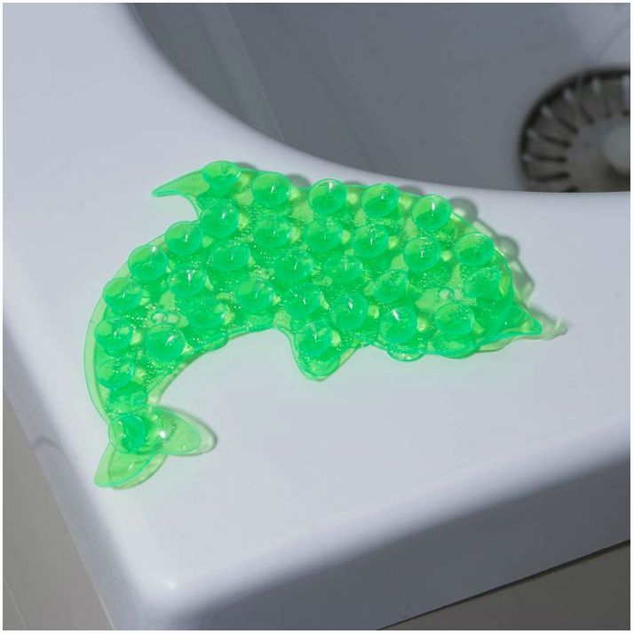 Коврики для ванной — аксессуары, незаменимые при купании ребёнка. Идеальным вариантом будет набор цветных изделий из высококачественной резины с двусторонним противоскользящим эффектом. На изнаночной и наружной стороне есть присоски, благодаря которым вы защитите своего неугомонного малыша от падений и ушибов во время мытья.