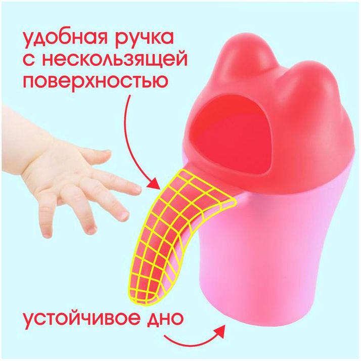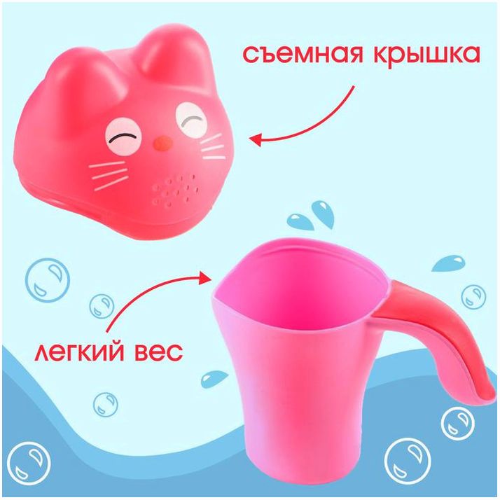 Ковш для купания и мытья головы, детский банный ковшик, хозяйственный «Котенок», цвет розовый (№7761352).