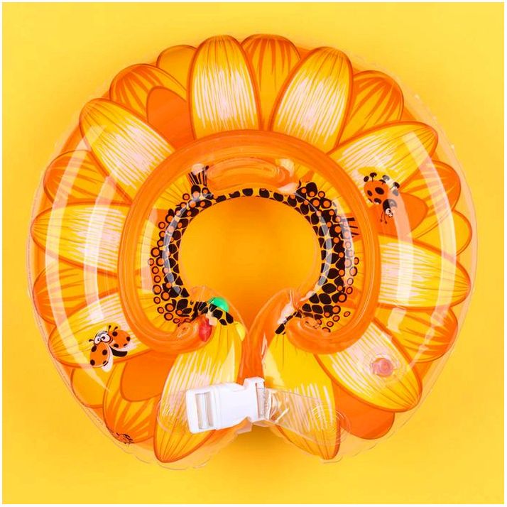 Круг детский на шею, для купания, «Подсолнух», с погремушками, двухкамерный, цвет оранжевый (№7669187).