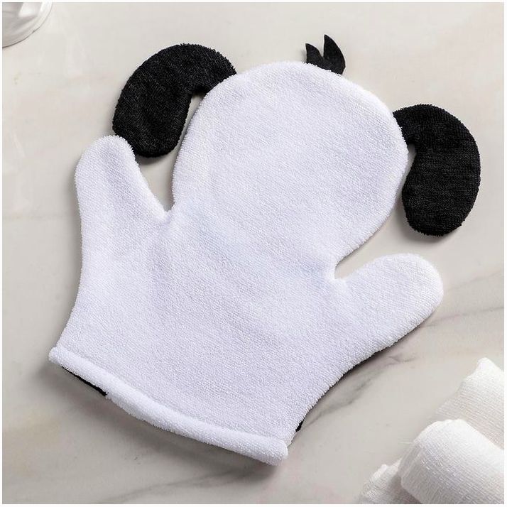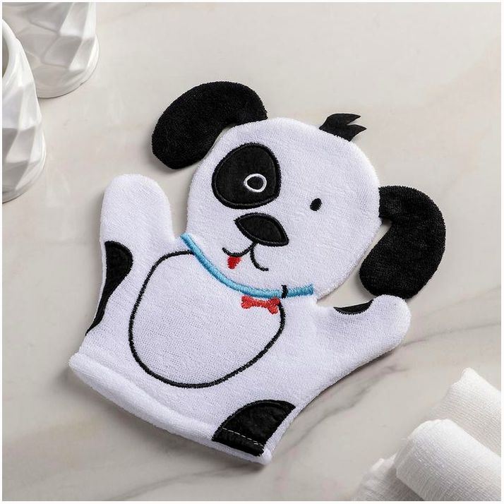 Мочалка-варежка детская для купания Доляна «Барбоскин», цвет белый с чёрным (№4442515).