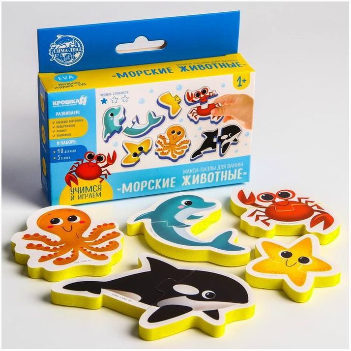 Мягкий пазл для малышей «Морские животные», 5 пазлов, Крошка Я (№5302618).