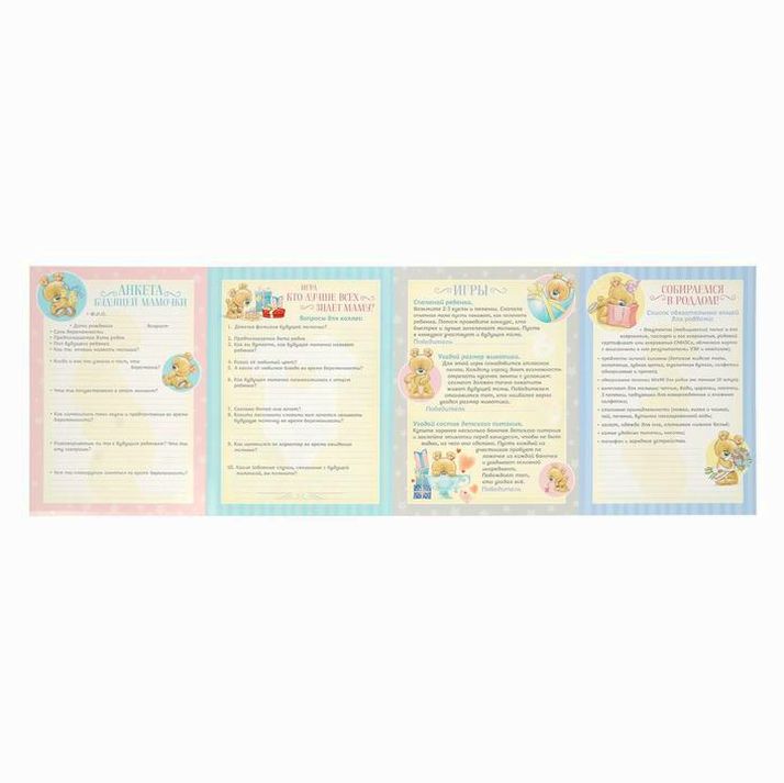 Папка с местом для записи пожеланий от коллег, анкета будущей мамочки и список необходимых вещей в роддом.