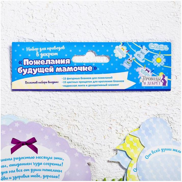 Украсьте таким набором комнату, и оригинальное поздравление готово! Он прекрасно впишется в интерьер и подарит нежное и солнечное настроение. В будущем мамочка с радостью будет перечитывать ваши пожелания.