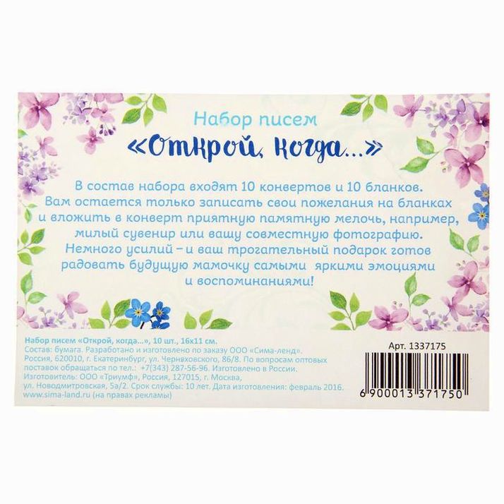 Набор для проводов в декрет «Письма на все случаи жизни» (№1337175).
