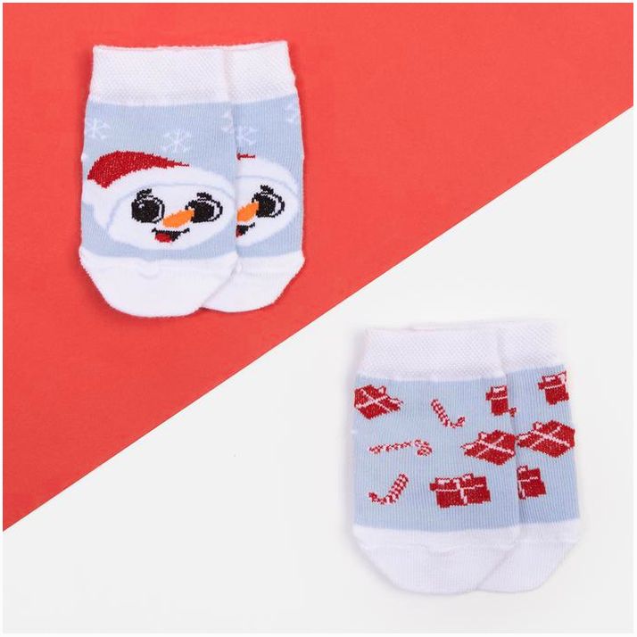 Набор новогодних детских носков Крошка Я «Снеговик», 2 пары, 6-8 см (№9085190).