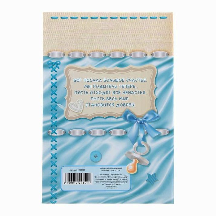 Папка для свидетельства о рождении «О рождении мальчика», А5 (№1204841).