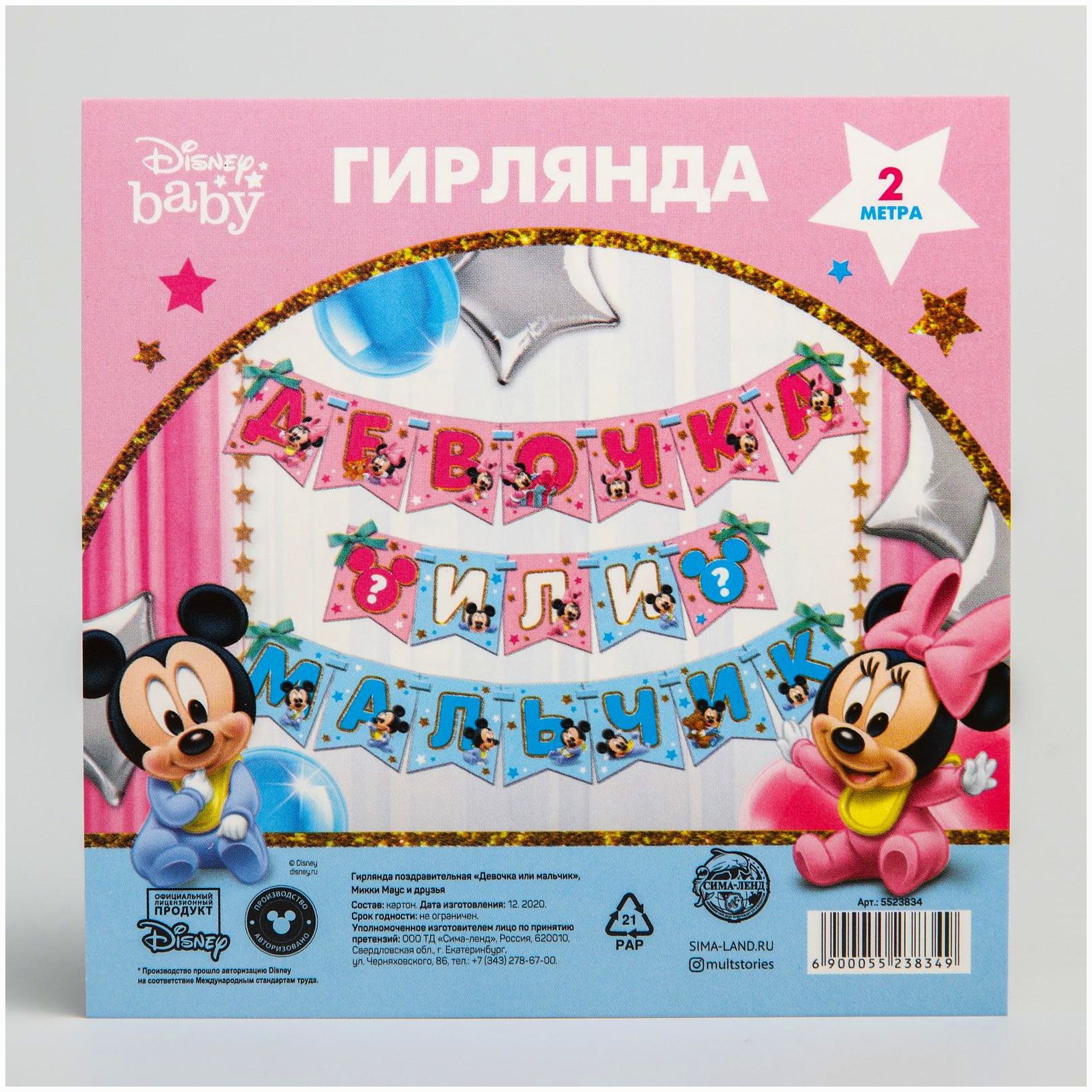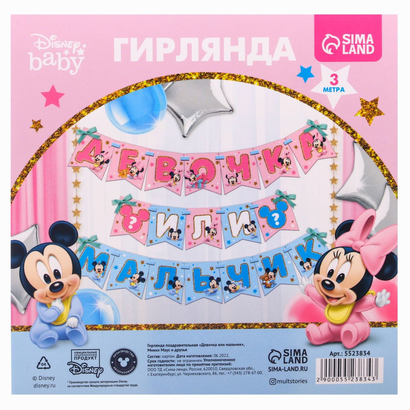 Гирлянда на ленте "Девочка или мальчик", длина 3 м, Дисней беби (№5523834).