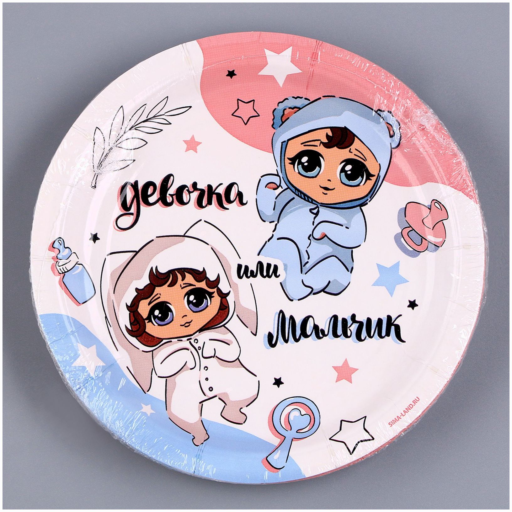Тарелка одноразовая бумажная "Мальчик или девочка", 18 см (№9796345).