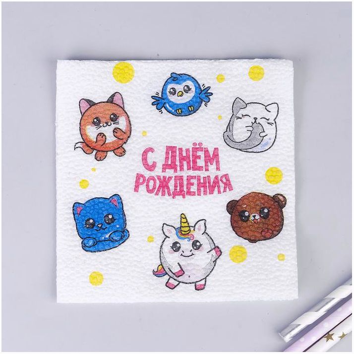 Салфетки бумажные «С днём рождения», сказочные звери, однослойные, 24х24 см, набор 20 шт. (№5067334).