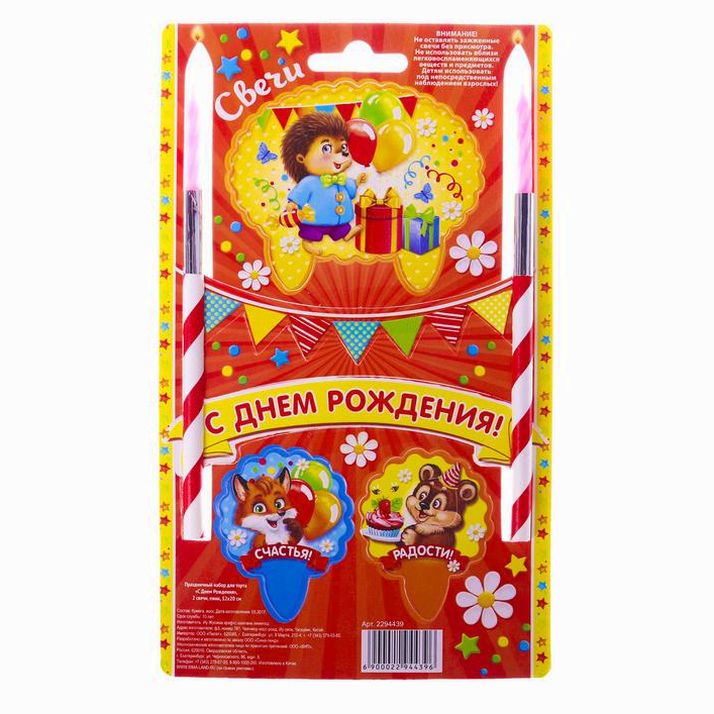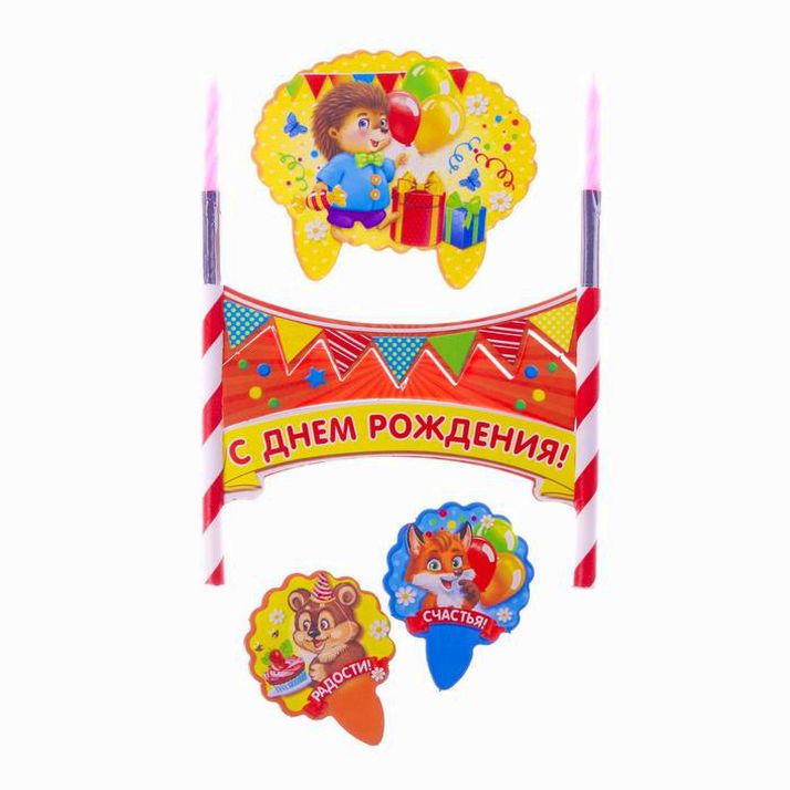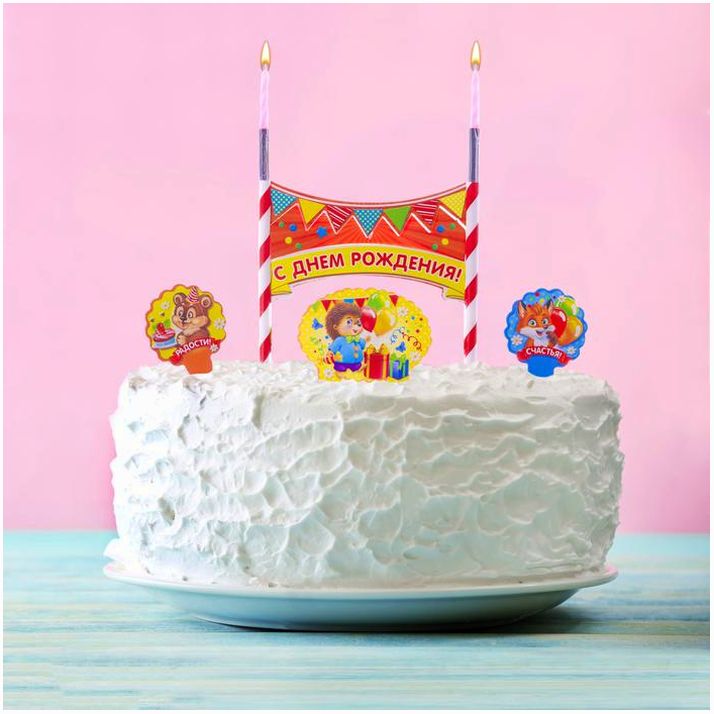 Набор для торта "С днем рождения" 2 свечи (№2294439).