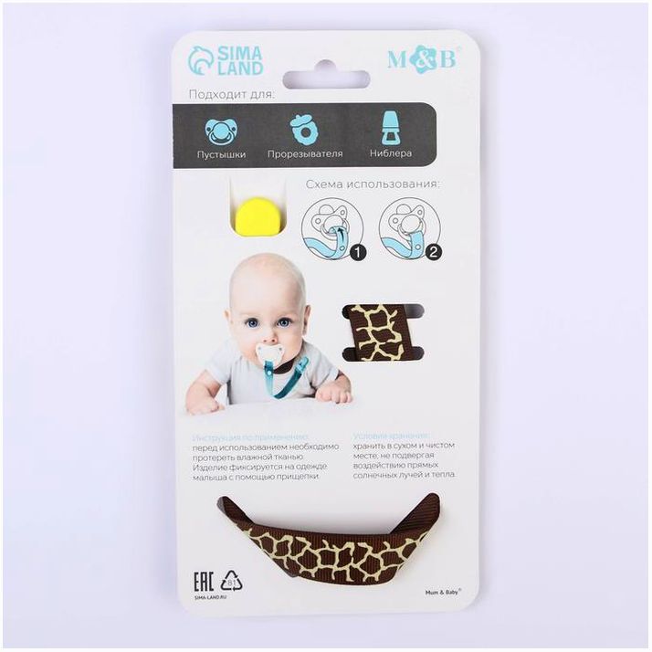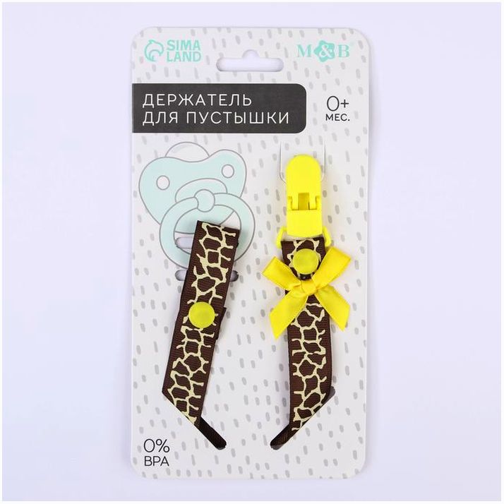 Держатель для соски - пустышки , ниблера «Жирафик» на ленте (№2792846).