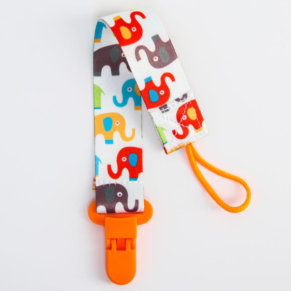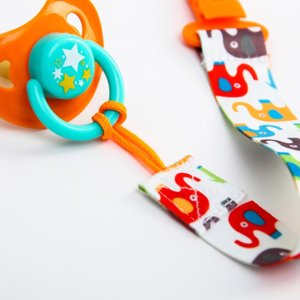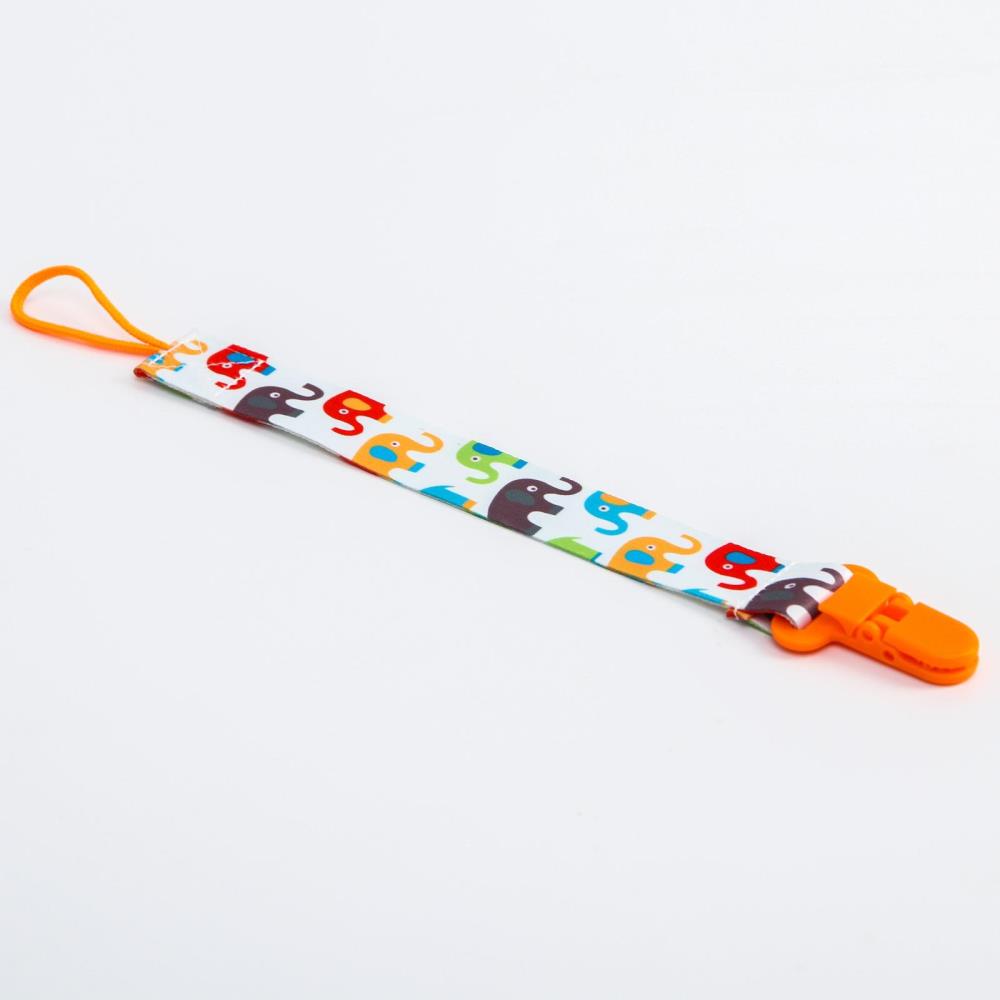 Держатель для соски - пустышки «Слоники», на ленте, 28 см. (№5421485).