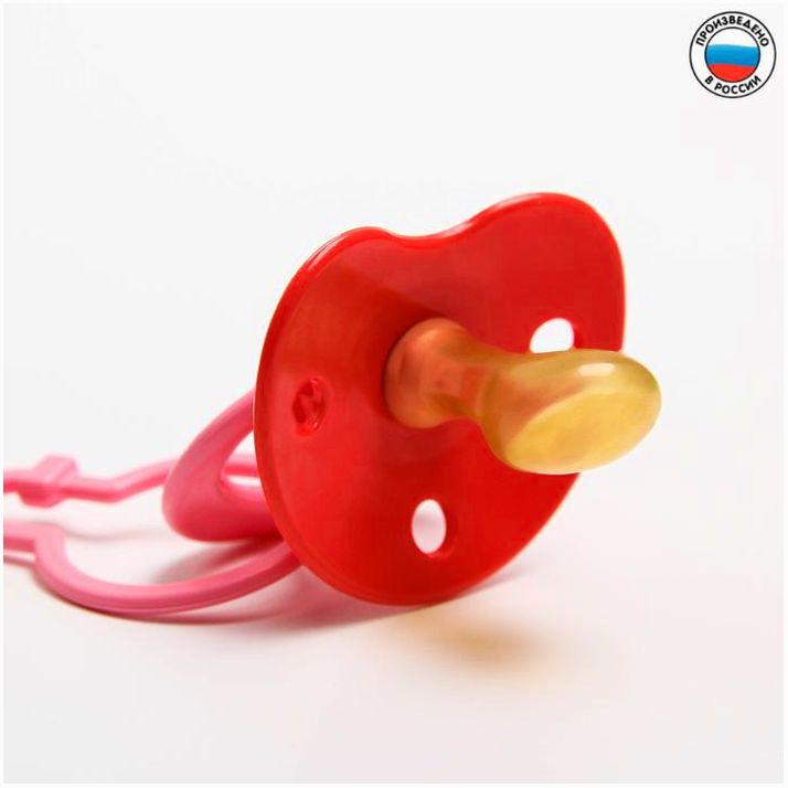 Соска-пустышка ортодонтическая, латекс, от 0 мес., с держателем, «Мур-мур», цвет розовый (№1476697).