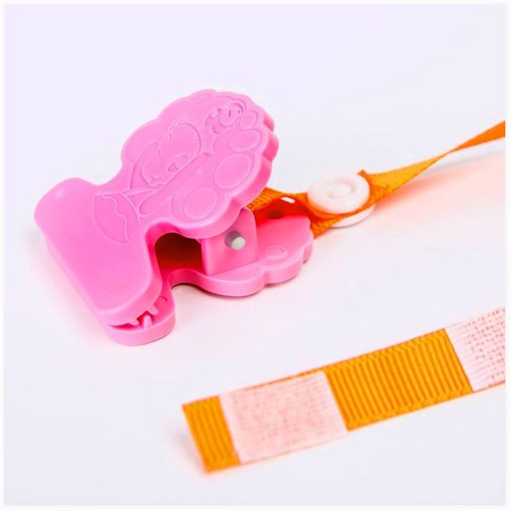 Отверстия нагубника способствуют свободной циркуляции воздуха, предотвращают намокание и появление раздражения на нежной детской коже. Защитный колпачок обеспечивает необходимую гигиеничность. Прищепка-держатель на ленточке предотвратит потерю маленького предмета.