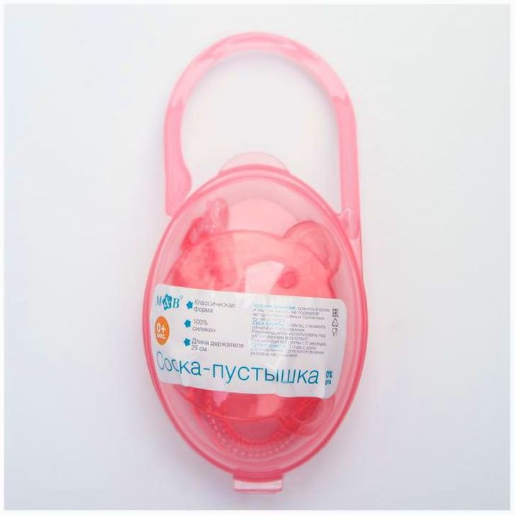 Пустышка цельносиликоновая, с держателем, в контейнере, от 0 мес., цвет розовый (№4350295).