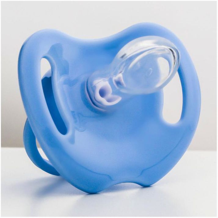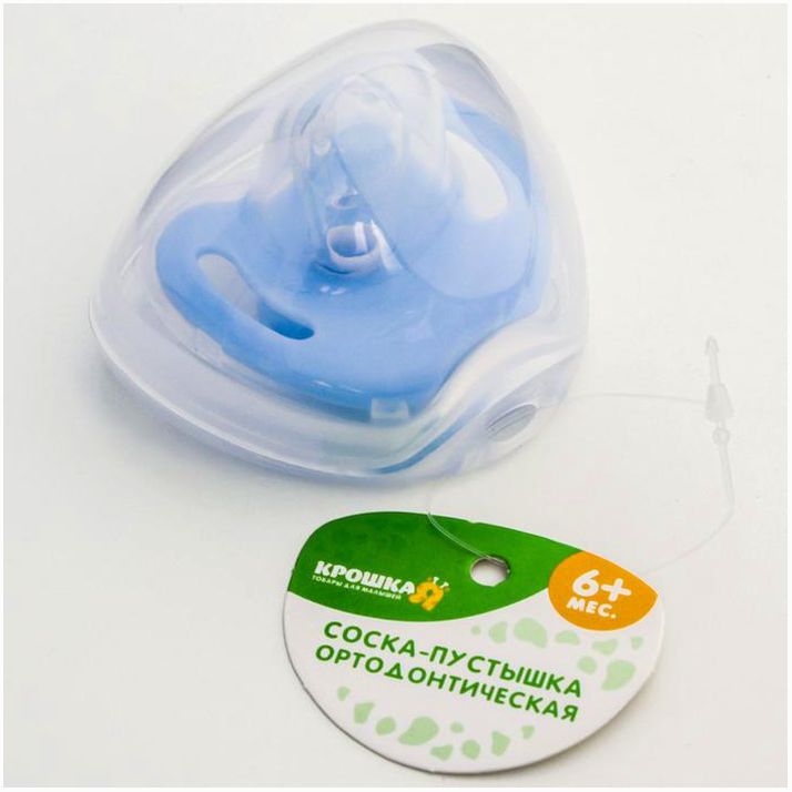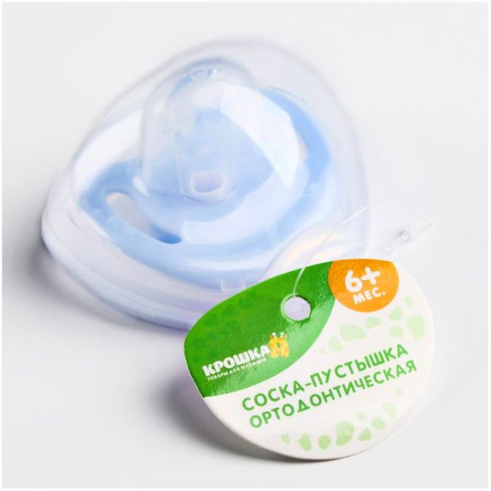 Пустышка от 6 мес., ортодонт., с колпачком, контейнер, цвет голубой/зеленый (№4591111).