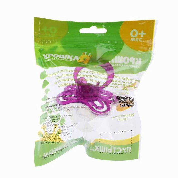 Пустышка «Бабочка», классическая, с колпачком, от 0 - 3 мес., цвет фиолетовый (№2589902).