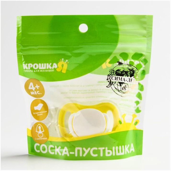 Соска-пустышка ортодонтическая, силикон, от 4 мес., с колпачком, цвет желтый (№4591099).