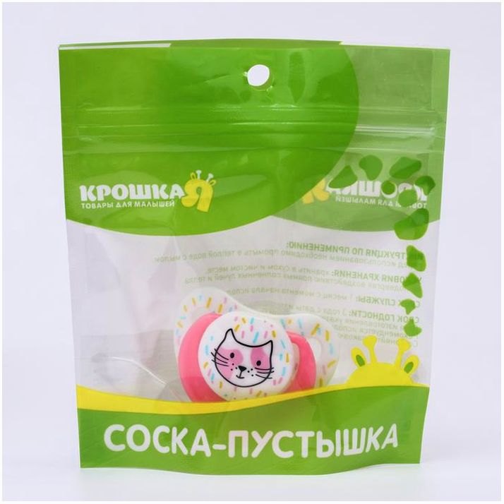 Соска пустышки силиконовая и имеет анатомическую форму диска, специальные вентиляционные отверстия на пустышке улучшают циркуляцию воздуха не раздражают кожу малыша и не оставляют следов и опрелостей. Создана для удовлетворения естественного сосательного рефлекса малышей. Пустышка анатомической формы имеет немного сплюснутый сосок, благодаря чему прилегает к языку.