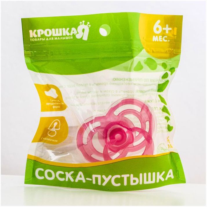 Соска пустышки силиконовая и имеет анатомическую форму диска, специальные вентиляционные отверстия на пустышке улучшают циркуляцию воздуха не раздражают кожу малыша и не оставляют следов и опрелостей. Создана для удовлетворения естественного сосательного рефлекса малышей. Пустышка анатомической формы имеет немного сплюснутый сосок, благодаря чему прилегает к языку.