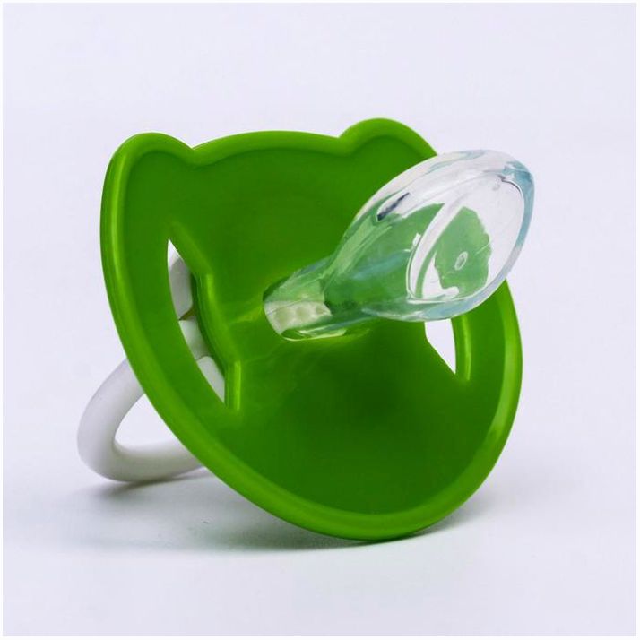 Соска пустышки силиконовая и имеет анатомическую форму диска, специальные вентиляционные отверстия на пустышке улучшают циркуляцию воздуха не раздражают кожу малыша и не оставляют следов и опрелостей. Создана для удовлетворения естественного сосательного рефлекса малышей. Пустышка анатомической формы имеет немного сплюснутый сосок, благодаря чему прилегает к языку.