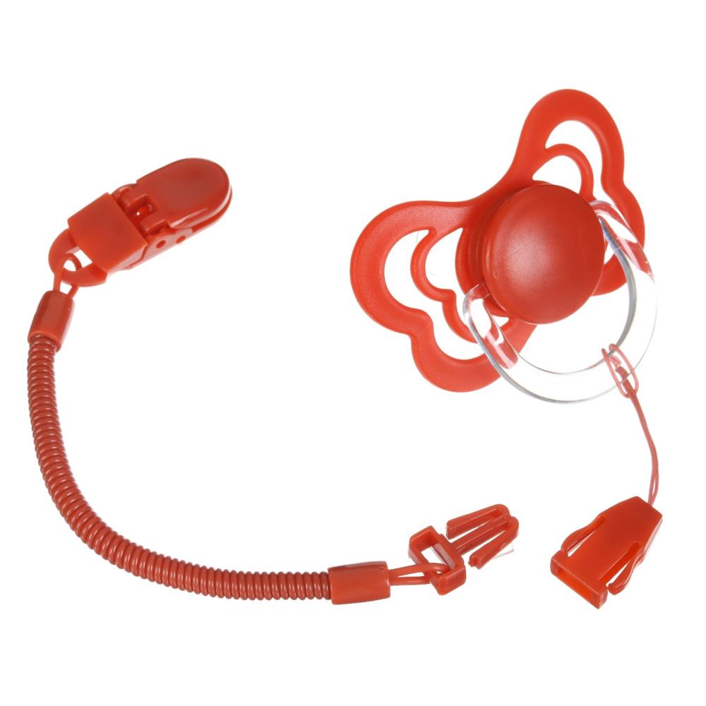 Соска - пустышка ортодонтическая, силикон, +6 мес., с держателем, цвет вишневый (№9887468).